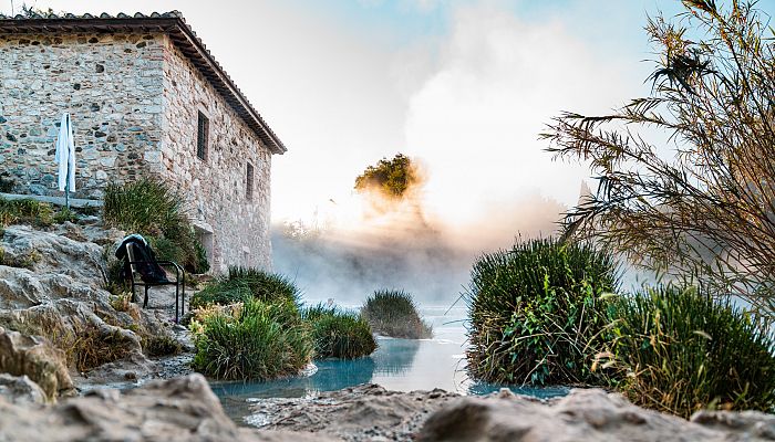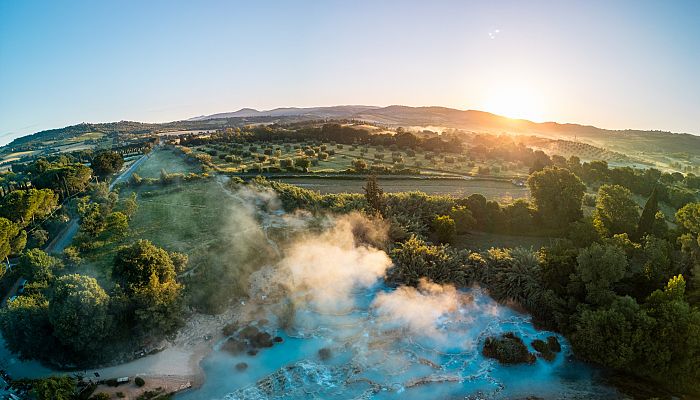 L’acqua termale di Saturnia arriva dalle viscere del Monte Amiata, un antico vulcano.